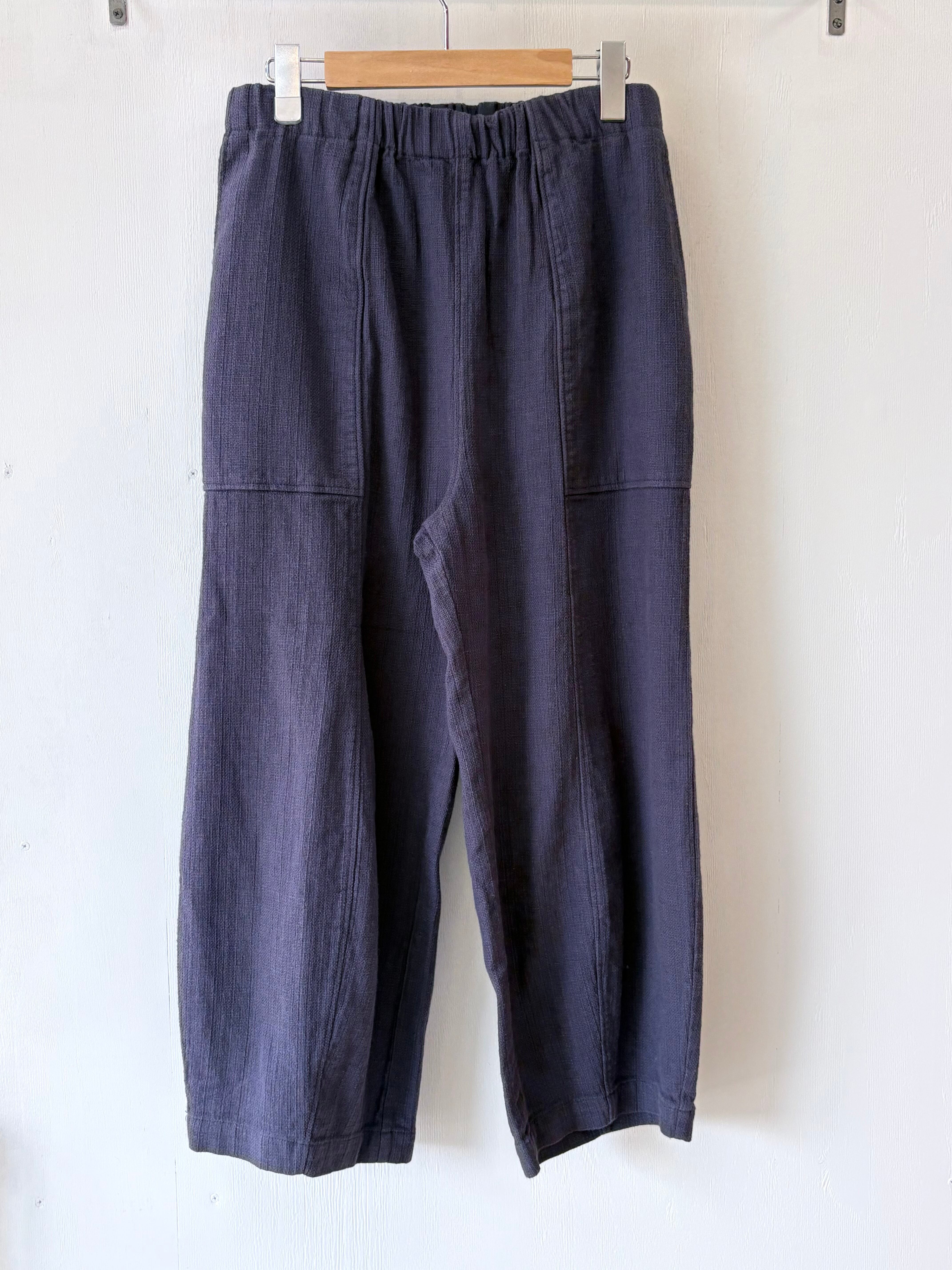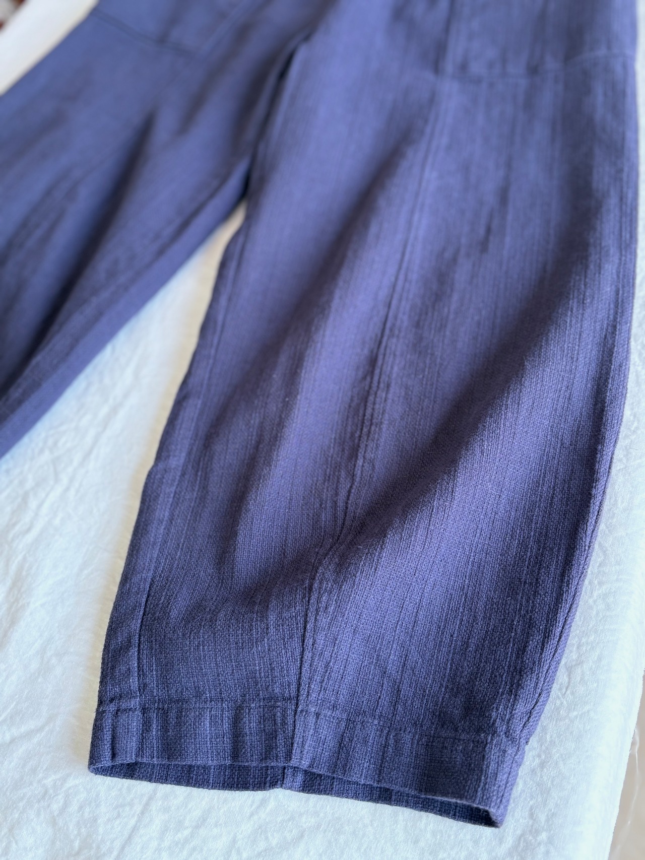 YARRAオリジナルで仕立てた甘撚りツイル素材を使用した、穿き心地のよさが魅力のパンツ。やわらかさの中にほどよいハリを感じる生地感で、日常に自然と馴染みながらも上質さを感じさせます。
