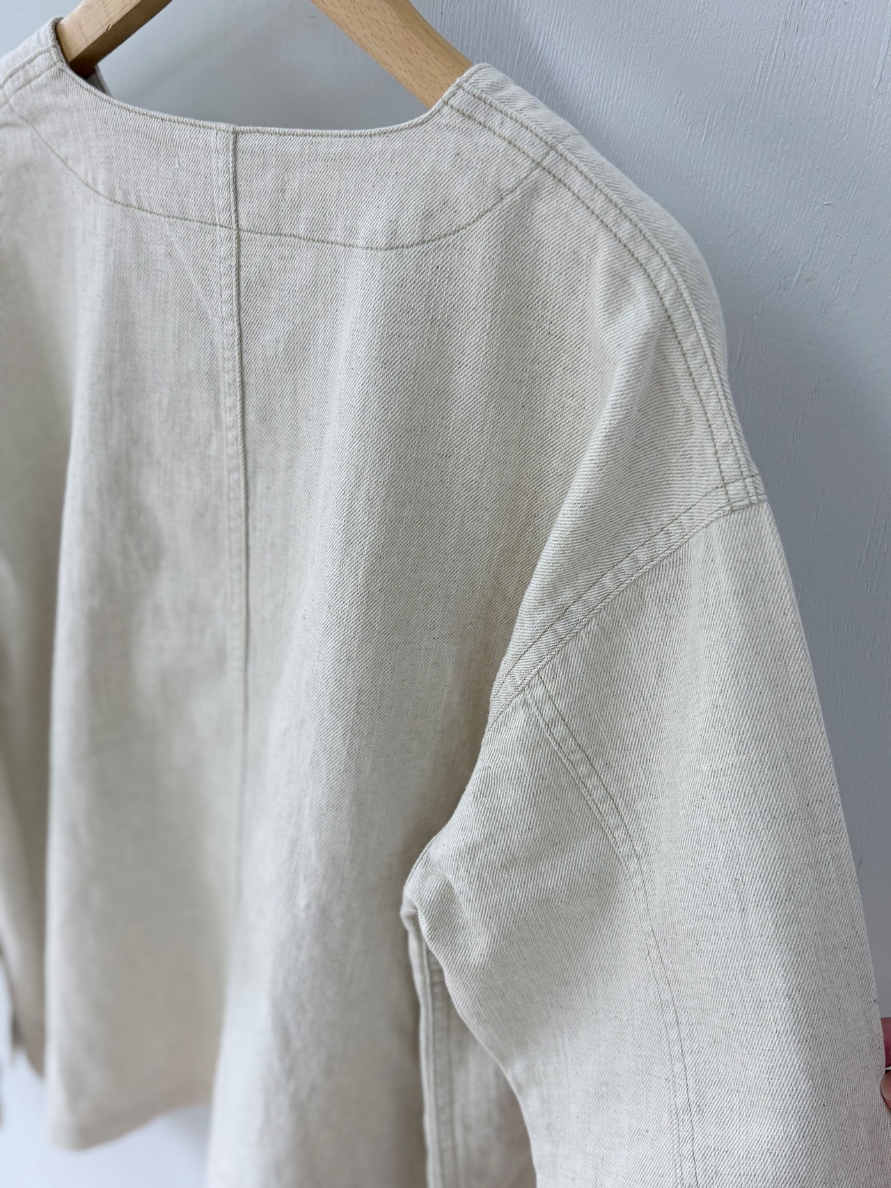 ゆるく綾織りされた柔らかい綿麻のデニム生地。