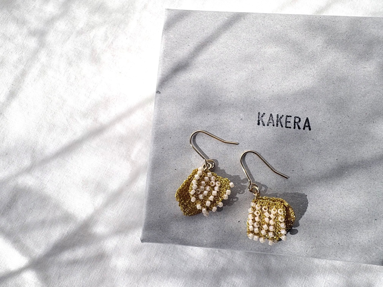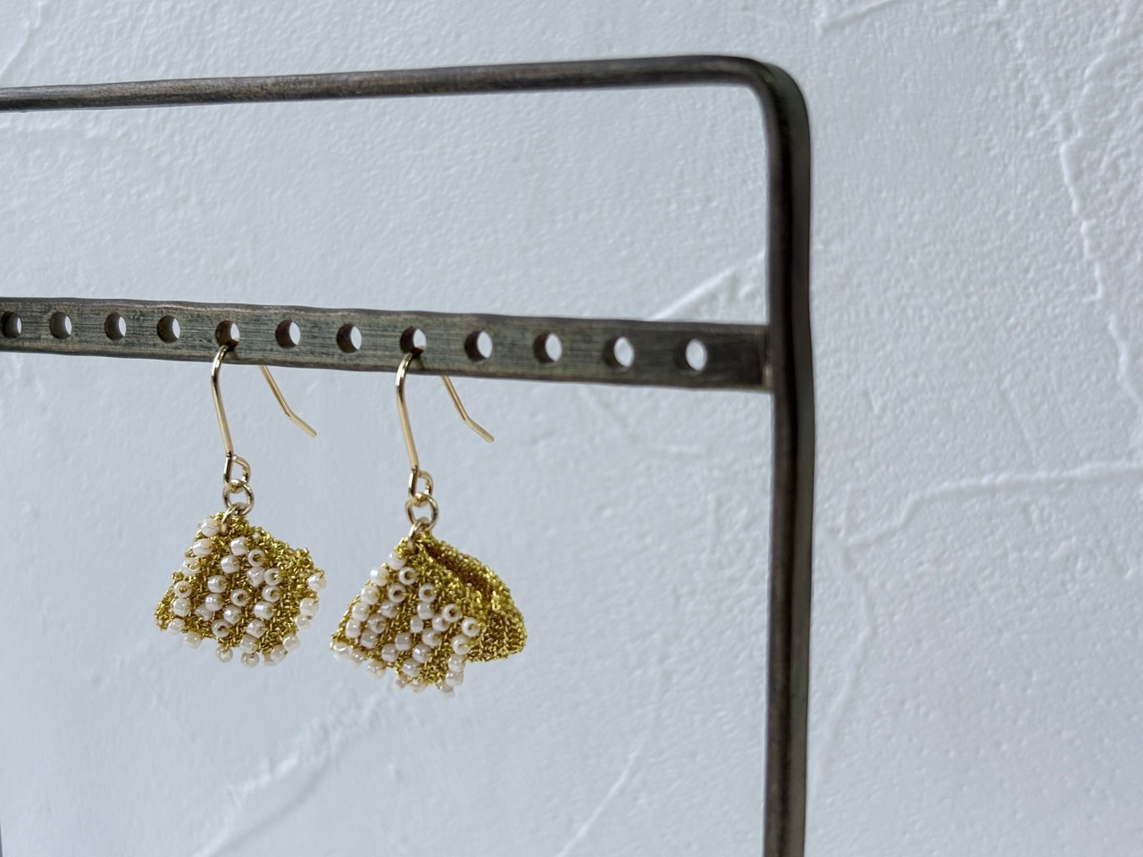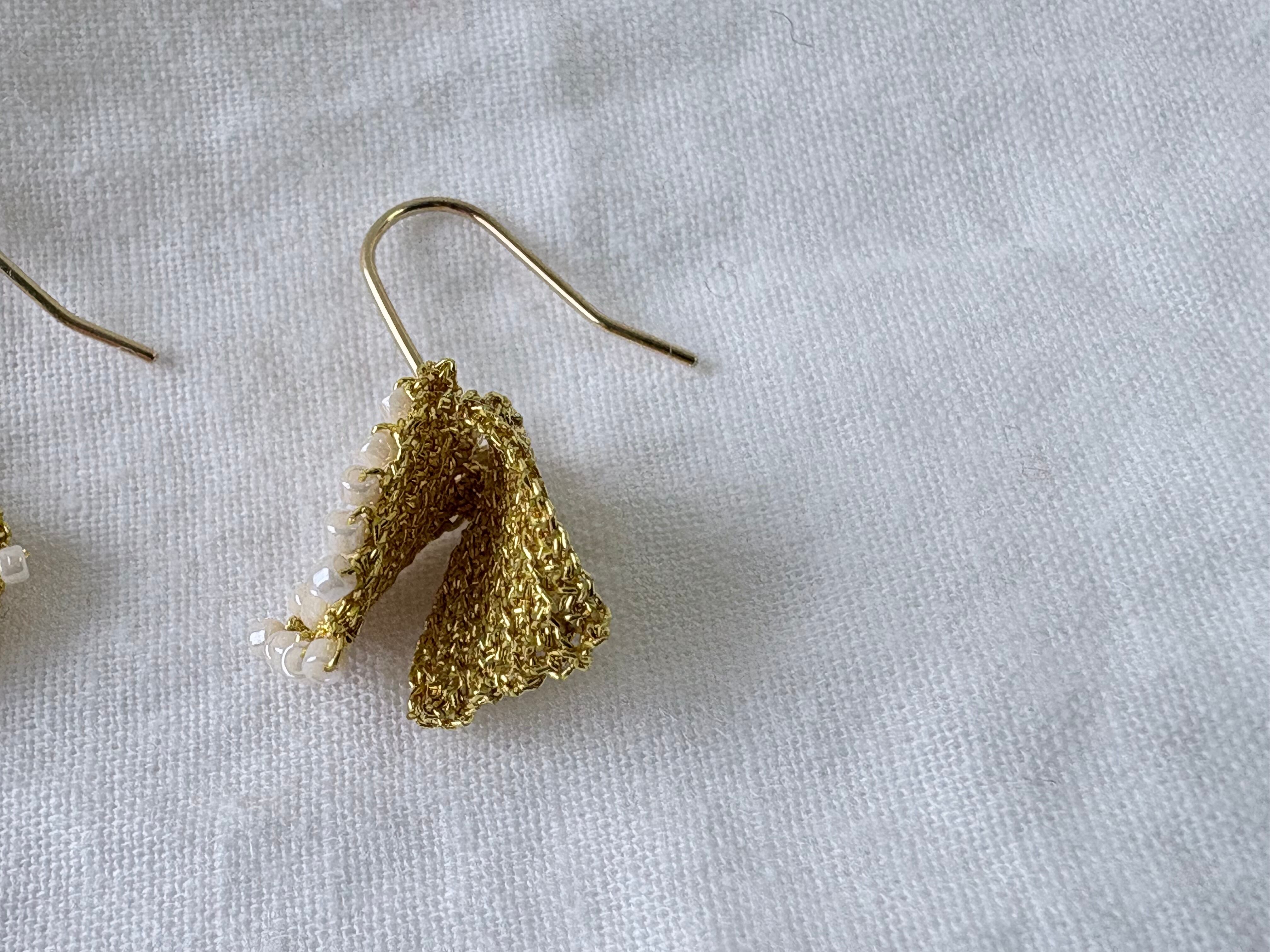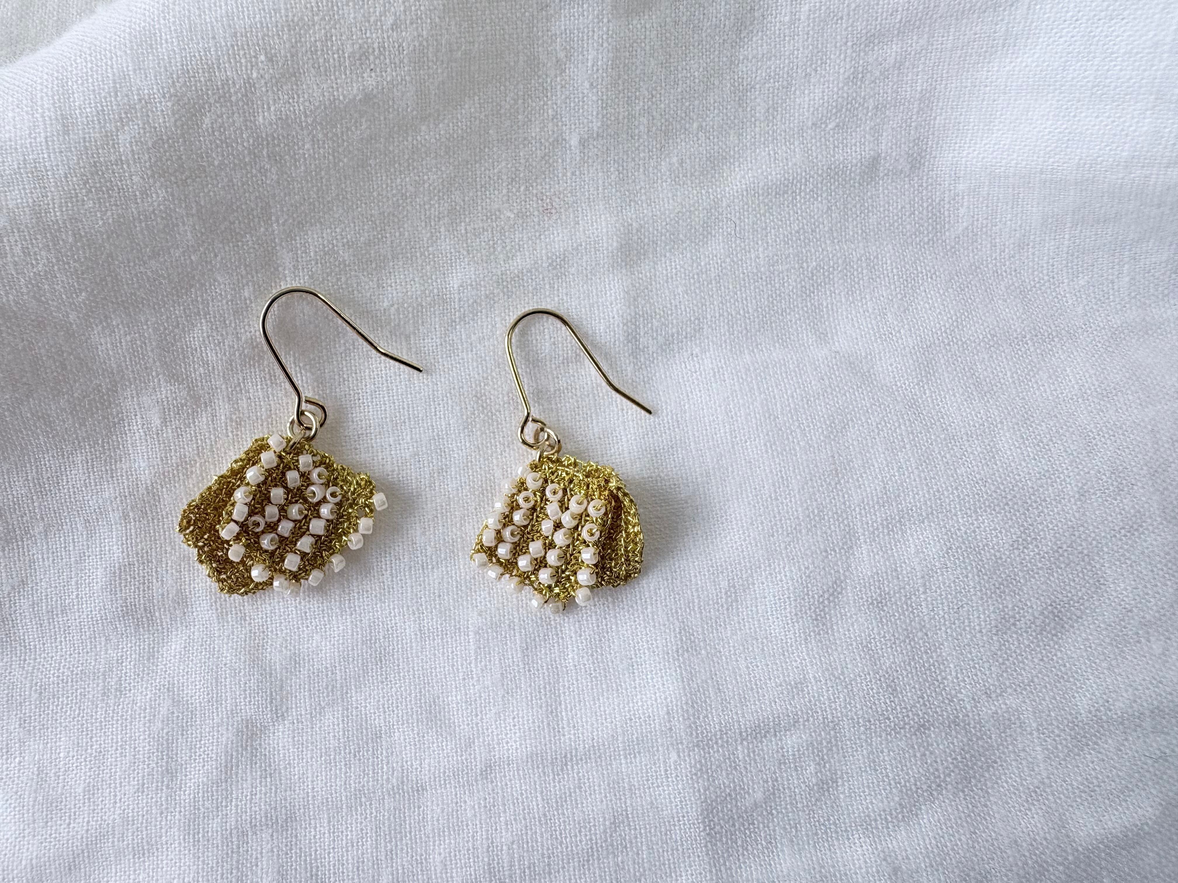 ワイヤーのゴールドとホワイトビーズの組み合わせが上品な印象で