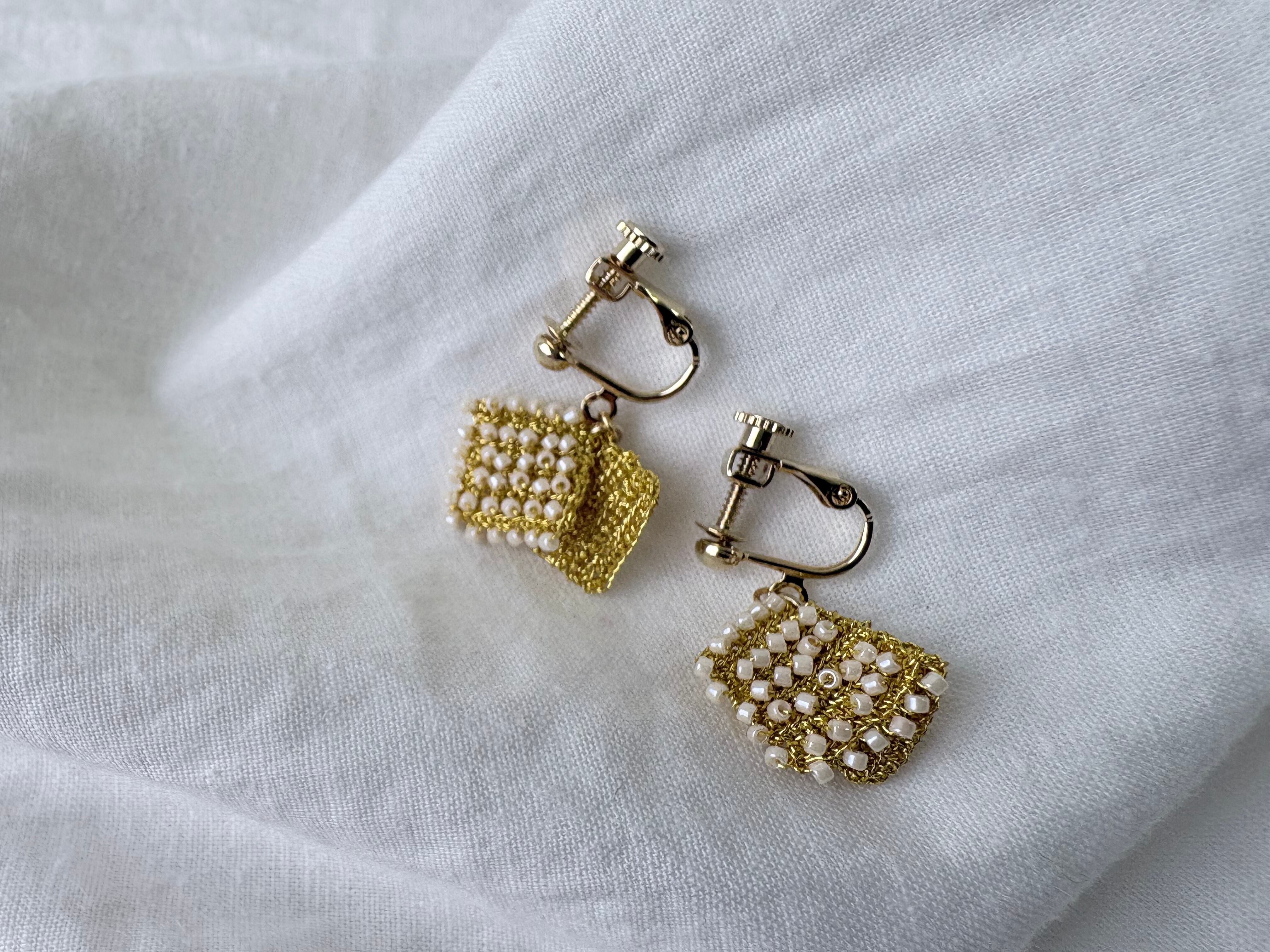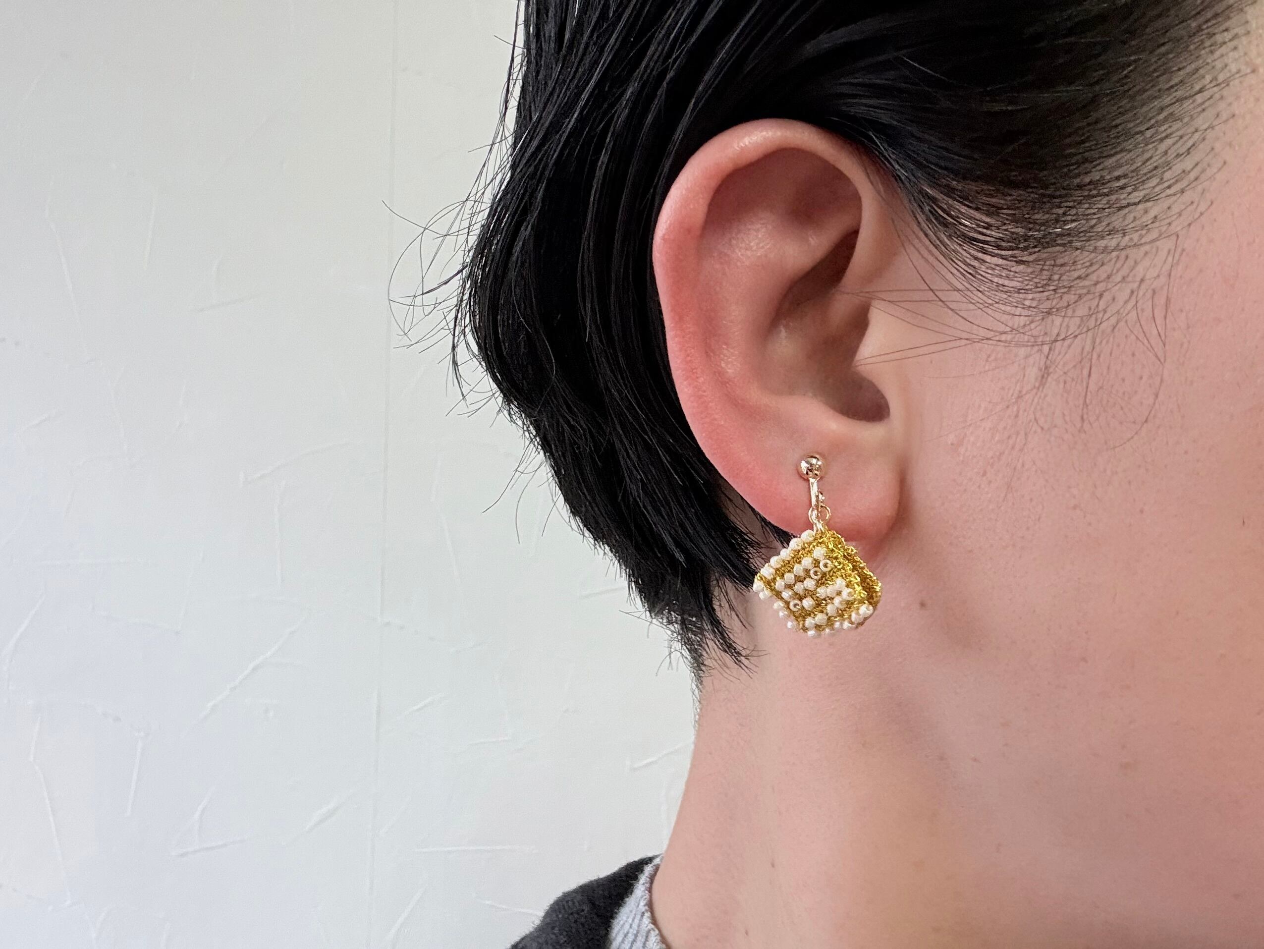 2枚のスクエアモチーフがゆらゆらと揺れるたのしいデザイン。
